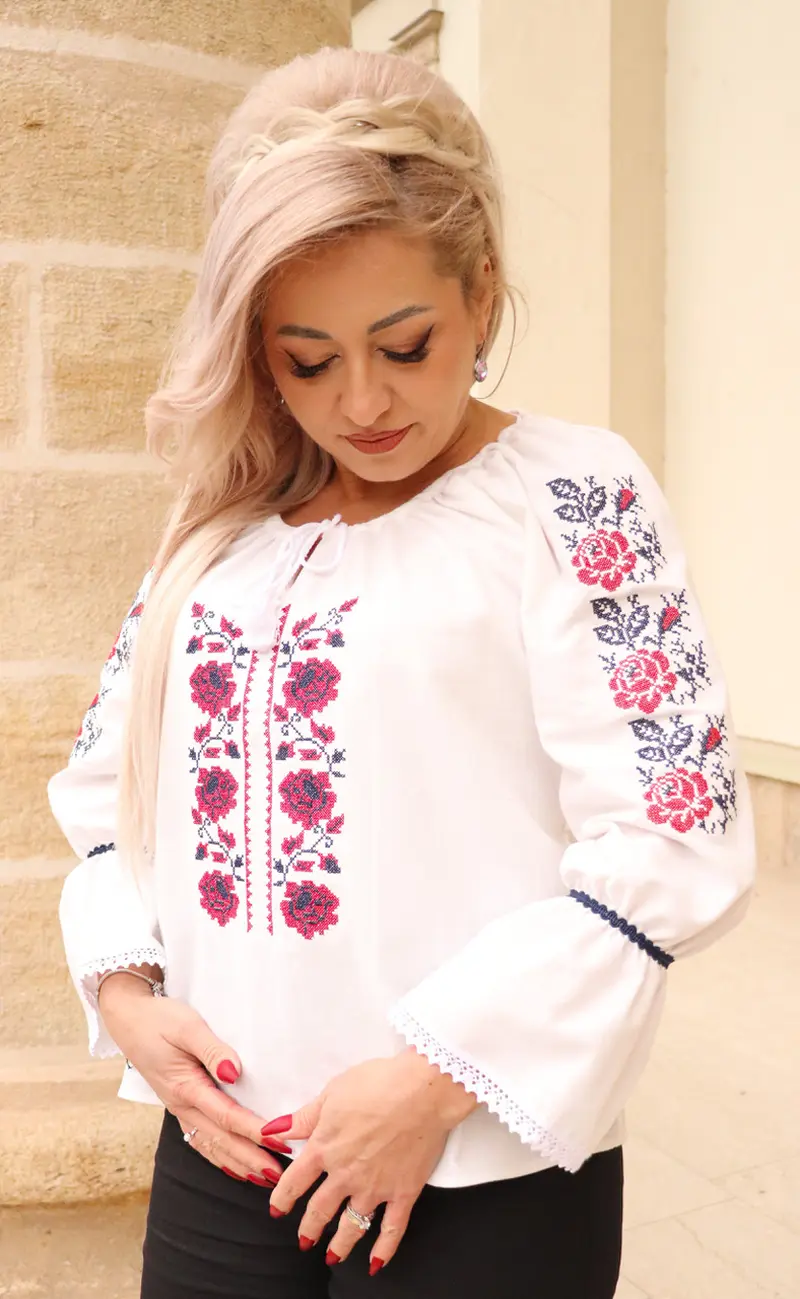 Ia tradițională Lidia reprezintă eleganța tradiției. Realizată din pânză de bumbac tradițională, cusută manual cu motive tradiționale românești, aduce farmecul autentic al portului popular în garderoba modernă. Această ie este alegerea perfectă pentru femeile care iubesc autenticitatea, eleganța și tradițiile românești. Poate fi purtată la evenimente speciale, sărbători populare sau în ținute de zi cu zi, aducând un strop de farmec românesc în orice moment.