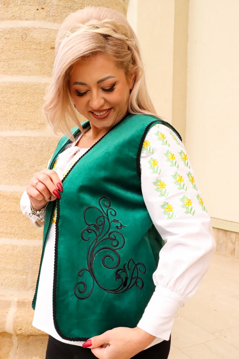Adaugă o notă de eleganță și mândrie românească ținutei tale cu veste brodate de la Maria Traditional – Eleganța tradiției. Aceste veste brodate tradițional sunt realizate cu mare grijă și atenție la detalii. Broderia inspirată din motive populare autentice aduce un farmec aparte fiecărei apariții, îmbinând tradiția cu stilul modern. Vei radia la orice eveniment special, de sărbători sau în fiecare zi, alături de o ie sau o cămașă elegantă.