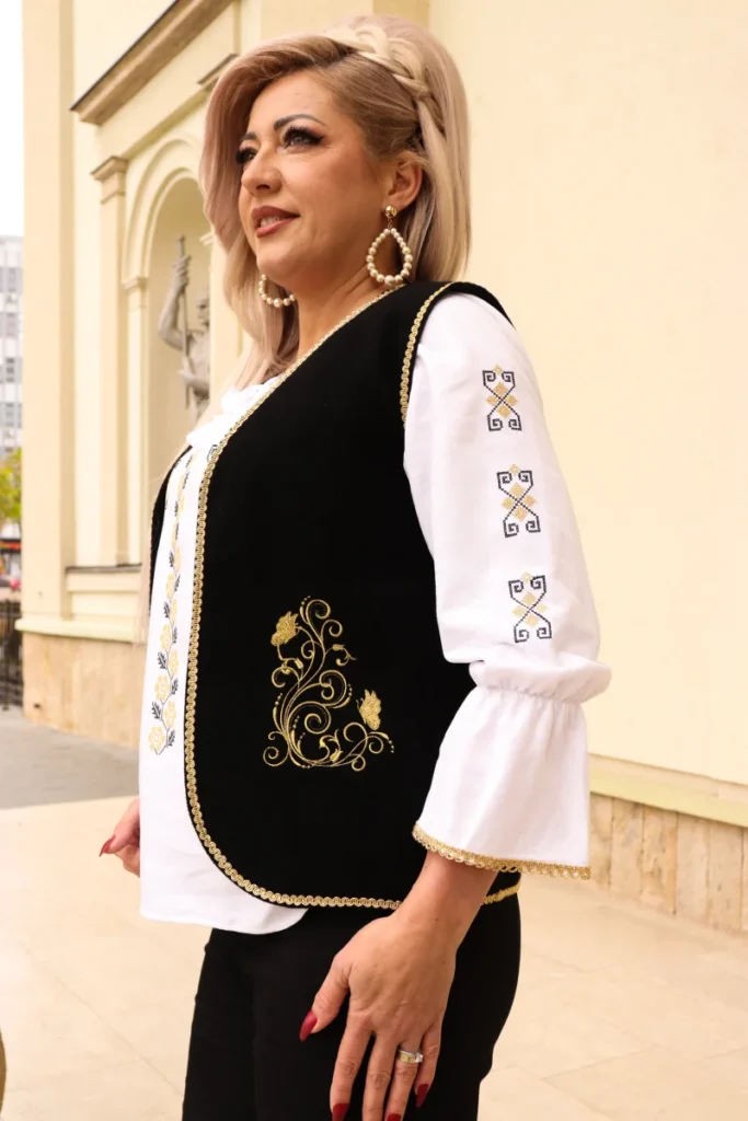 Adaugă o notă de eleganță și mândrie românească ținutei tale cu veste brodate de la Maria Traditional – Eleganța tradiției. Aceste veste brodate tradițional sunt realizate cu mare grijă și atenție la detalii. Broderia inspirată din motive populare autentice aduce un farmec aparte fiecărei apariții, îmbinând tradiția cu stilul modern. Vei radia la orice eveniment special, de sărbători sau în fiecare zi, alături de o ie sau o cămașă elegantă.